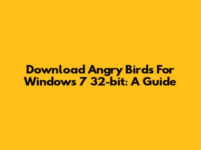 Download Angry Birds For Windows 7 32-bit: A Guide