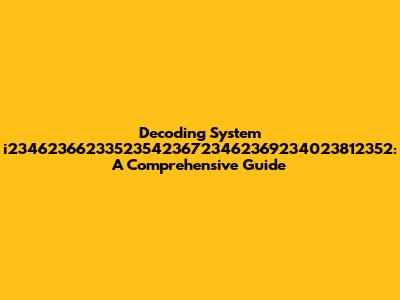 Hey guys! Let's dive into the fascinating world of system i2346236623352354236723462369234023812352. It sounds like a mouthful, right? But don't worry, we're going to break it down and make it super easy to understand. This system, like many complex systems, can seem intimidating at first glance, but with the right approach, we can demystify its inner workings. This guide is your ultimate companion to understanding, troubleshooting, and potentially even optimizing this system. We'll explore various facets of the system, covering everything from its fundamental components to advanced troubleshooting techniques. So, buckle up, and let's get started on this exciting journey of discovery. Whether you're a seasoned techie or just starting out, this guide is designed to provide you with valuable insights and practical knowledge. Our goal is to empower you with the tools and understanding needed to effectively navigate and manage system i2346236623352354236723462369234023812352. Let's make this exploration both informative and enjoyable. We'll be using clear, concise language, avoiding jargon where possible, and providing real-world examples to help you grasp the concepts more easily. The ultimate aim? To transform you from someone who's intimidated by the system into someone who feels confident in tackling its challenges. So, are you ready to unlock the secrets of this complex system? Let's go!