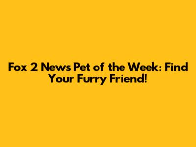 Hey pet lovers! Are you ready to find your new best friend? Look no further! This article is all about Fox 2 News Pet of the Week, where we shine a spotlight on adorable animals looking for their forever homes. We'll dive into how the program works, what kinds of pets you might find, and, most importantly, how you can adopt one of these cuties. So, grab your coffee, get comfy, and let's explore the wonderful world of Fox 2 News Pet of the Week together! This is the perfect place to start if you are looking for a pet. Finding a pet can be difficult and time consuming. But here at Fox 2 News Pet of the Week, you can find various pets that are looking for a home. The great thing about the program is that the pets are vetted, so you know you are getting a healthy companion. The program is committed to connecting loving families with pets that need homes. The program is an excellent resource for anyone looking to adopt a pet. From dogs and cats to rabbits and birds, you're bound to find a pet that fits your lifestyle. Get ready to have your heart stolen by these furry, feathered, and scaled friends. Are you looking for a fun program? Well, look no further than Fox 2 News Pet of the Week. This program is dedicated to showcasing adorable animals that are looking for a forever home. Whether you're a dog person, a cat person, or just love animals in general, this is a must-watch segment. Each week, Fox 2 News features a different pet, giving you a chance to learn about their personality, needs, and how to bring them home. This is more than just a TV segment; it's a bridge that connects pets with loving families. So, get ready to open your heart and your home to a new companion!