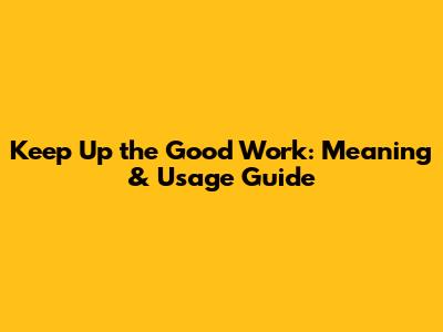 Hey guys! Ever heard someone say "Keep up the good work" and wondered what it really means? Well, you're in the right place! In this article, we'll dive deep into the meaning of this common phrase, explore how to use it effectively, and even look at some cool alternatives. Let's get started, shall we?