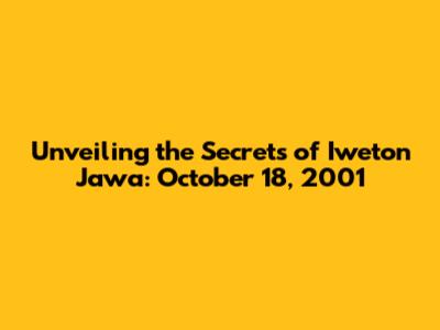 Hey guys! Ever heard of Iweton Jawa? It's a fascinating subject, and when we zoom in on the specific date of October 18, 2001, things get even more intriguing. This article dives deep into the context of Iweton Jawa on that day, exploring what might have been happening, the potential significance, and some of the elements that made it special. While the term “Iweton” itself might be obscure, the date offers a concrete starting point to unearth a slice of history. We will be using this date as a lens to examine possible cultural, social, and perhaps even political events that could have been relevant in the region. To understand the impact of Iweton Jawa we need to examine the details, and this article aims to do exactly that, providing an informative overview of the events and the context. Let’s embark on this journey and learn something new!